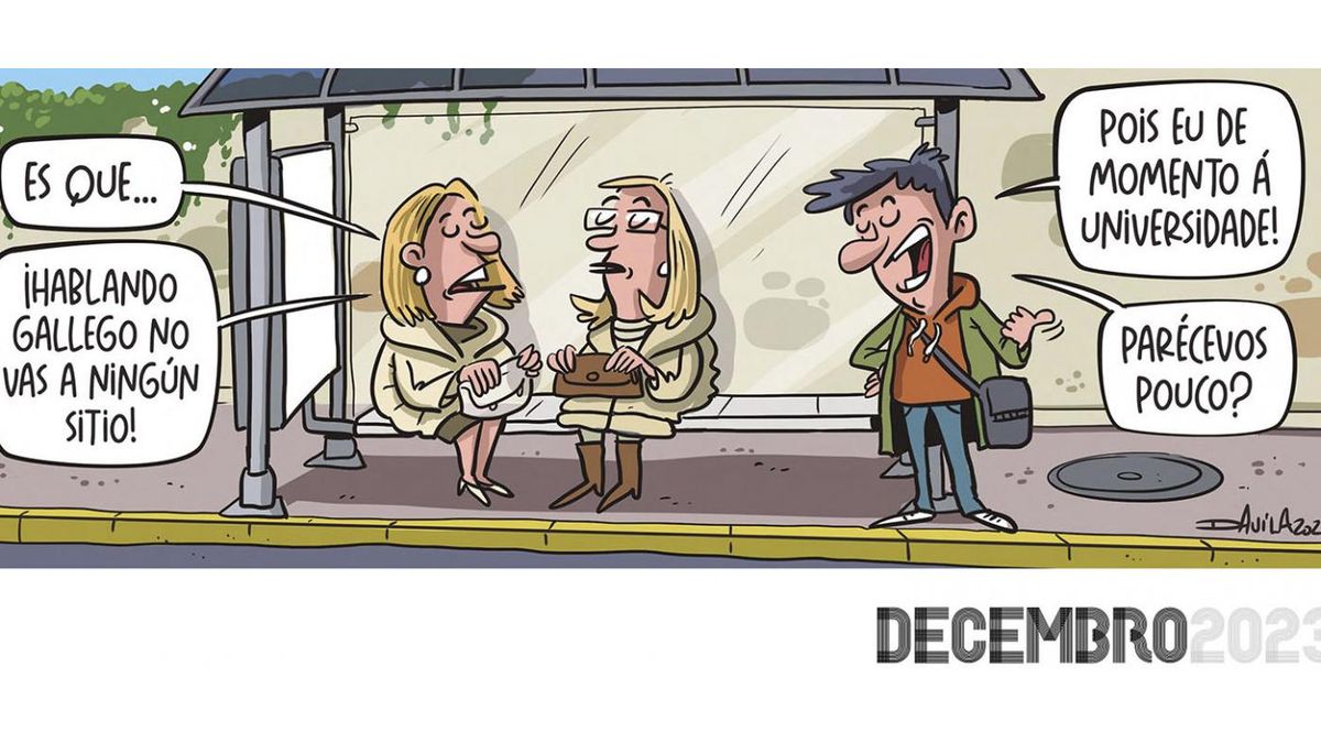 As viñetas de Luis Davila denuncian os prexuízos que persisten sobre o uso do galego no eido universitario
